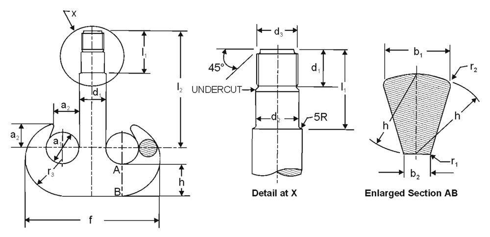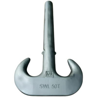 May include dual latches on each horn for securing slings or links. Spring-loaded or mechanical self-locking.